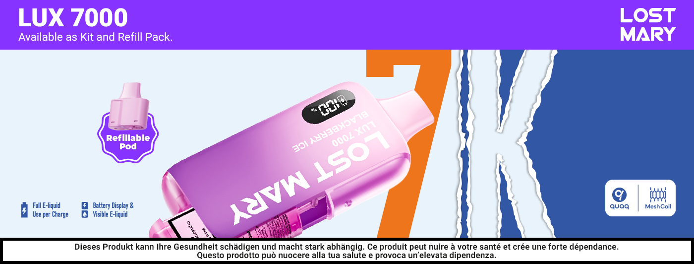 Pod-Kit E-Zigaretten sind im Vergleich zu Einweg Modellen um einiges leistungsfähiger und haben wiederaufladbare und leistungsstärkere Akkus. Zudem können diese wieder befüllt werden. Sehr beliebt sind diese Modelle für Unterwegs oder auch für Anfänger, die umsteigen möchten. Trotz ihrer kleinen Grösse liefern sie einmaligen Geschmack und ein angenehmes Dampfvolumen.