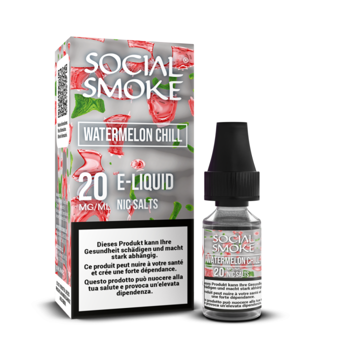 Die legendären Social Smoke Shisha-Flavours sind jetzt auch als Liquid für deine E-Zigarette erhältlich. Watermelon Chill vereint den saftigen, süssen Geschmack reifer Wassermelone mit einer angenehm kühlen Minznote. Die fruchtige Süsse wird durch die erfrischende Kühle perfekt ergänzt und sorgt für ein ausgewogenes, belebendes Dampferlebnis. Ideal für alle, die sommerliche Fruchtaromen mit einem frischen Kick lieben und den klassischen Shisha-Genuss modern geniessen möchten. Einfach nachfüllen und die pure Erfrischung erleben.